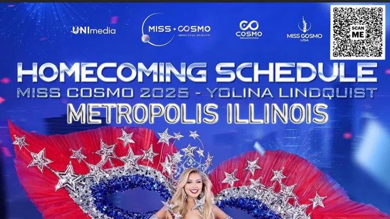 Metropolis Celebrates Yolina Lindquist's Homecoming Event Metropolis, Illinois - This Sunday, February 15th, the community will come together to warmly welcome home Yolina Lindquist, freshly crowned Miss Cosmo International. The celebration will take place at The Space, located at 715 Market Street, from 3:00 to 5:00 P...