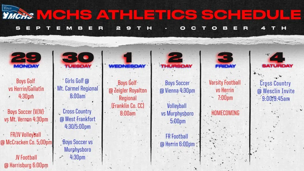 With a packed schedule of competitive events, MCHS encourages everyone to come out and support our athletes throughout the week!