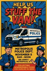 The Metropolis Police Department is calling on the community to come together for a noble cause this holiday season. On Saturday, November 8th, from 8:00 AM to noon, residents are invited to participate in a food drive aimed at collecting nonperishable food items for local families in need.