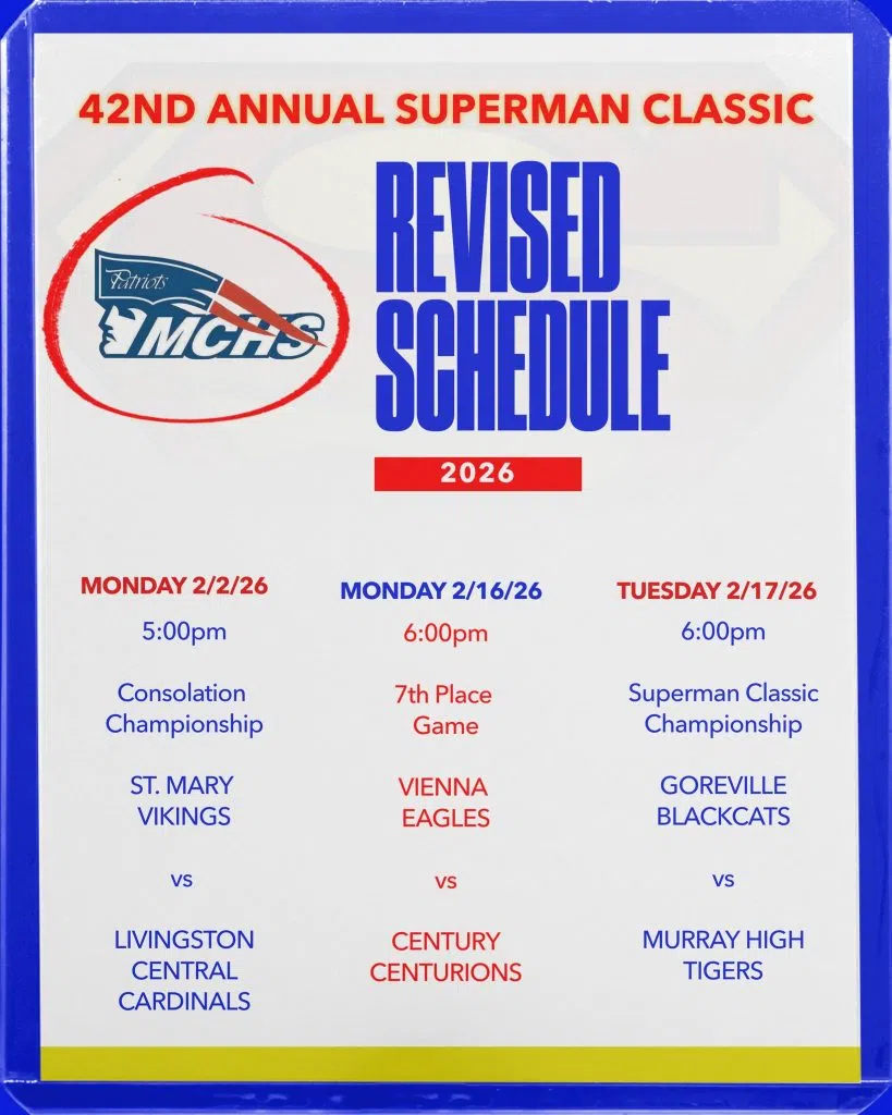 Winter Storm Fern interrupted the Superman Classic Championship. The revised schedule is included below.