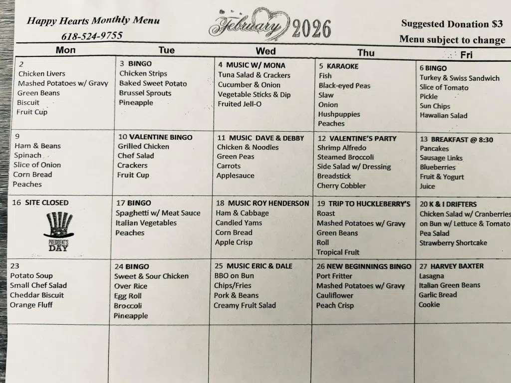 Happy Hearts Senior Center Menu - February 2026