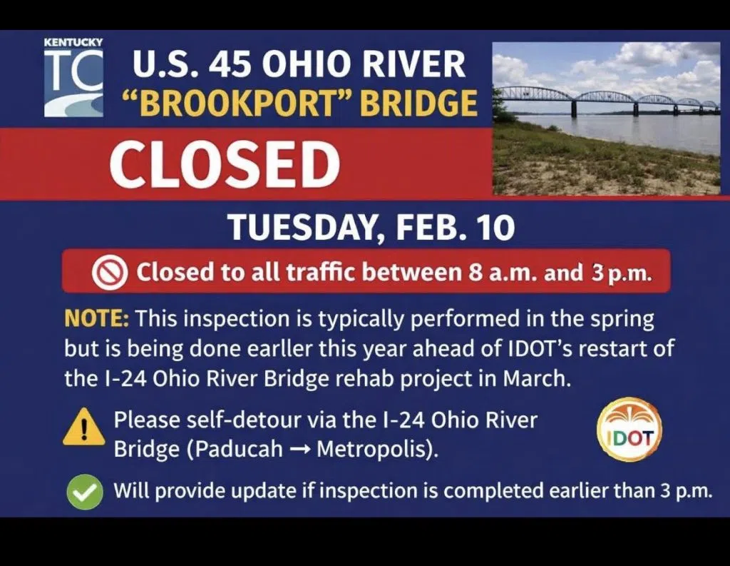 WMOK – Massac County, IL – The Massac County Highway Department has advised WMOK that Hickory Hill Road, located between Marion Road and Benton Road, will be closed for repairs due to concerns regarding the railroad bridge.