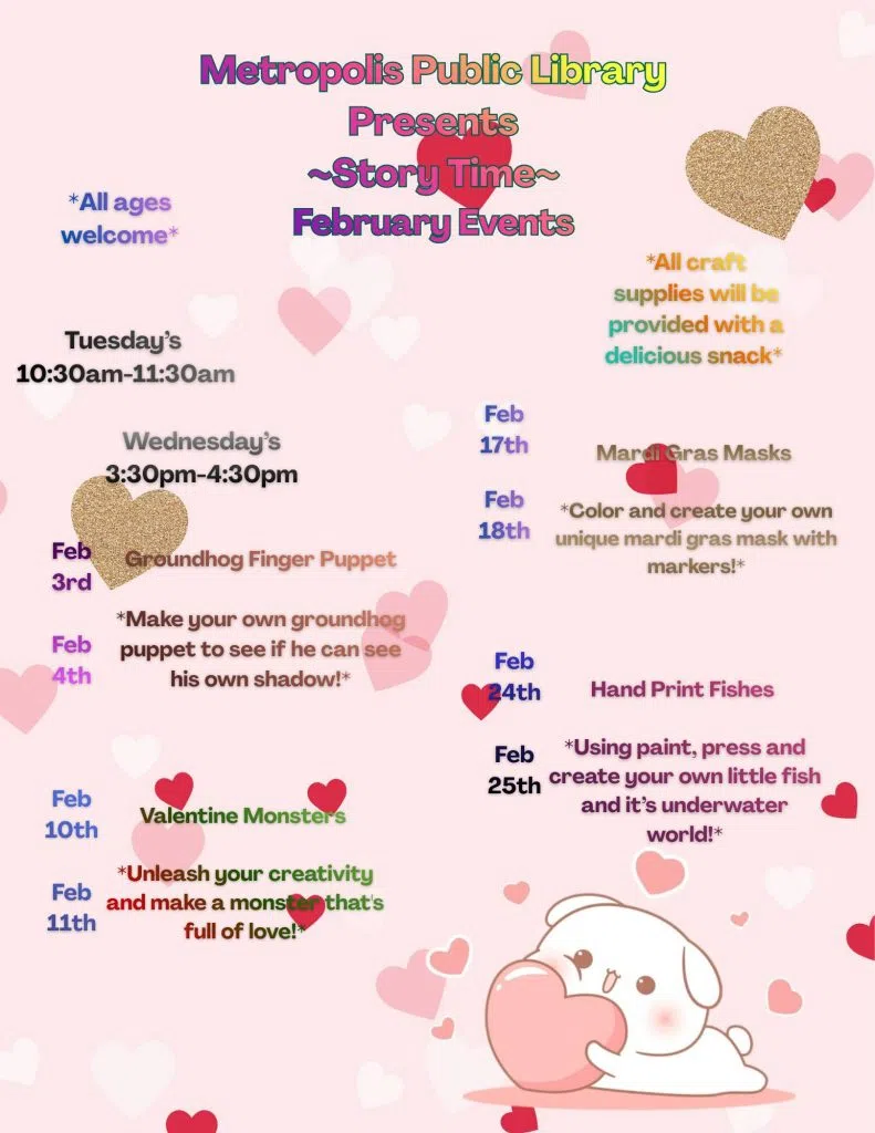 Library Lovers Day – Valentine’s Day AND Library Lovers’ Day – The Metropolis Public Library is open this and every Saturday from 10am until 2pm