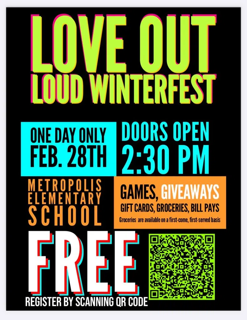 Community meal tonight, February 23 @ 5pm at the Metropolis Community Center on 10th Street. Personal hygiene items and diapers will also be available for anyone who may need them. All ages are welcome!